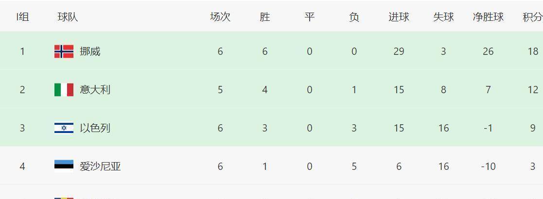 挪威队主场5比0横扫以色列的比分,让意大利队此前3比1战胜爱沙尼亚的胜利显得毫无意义。