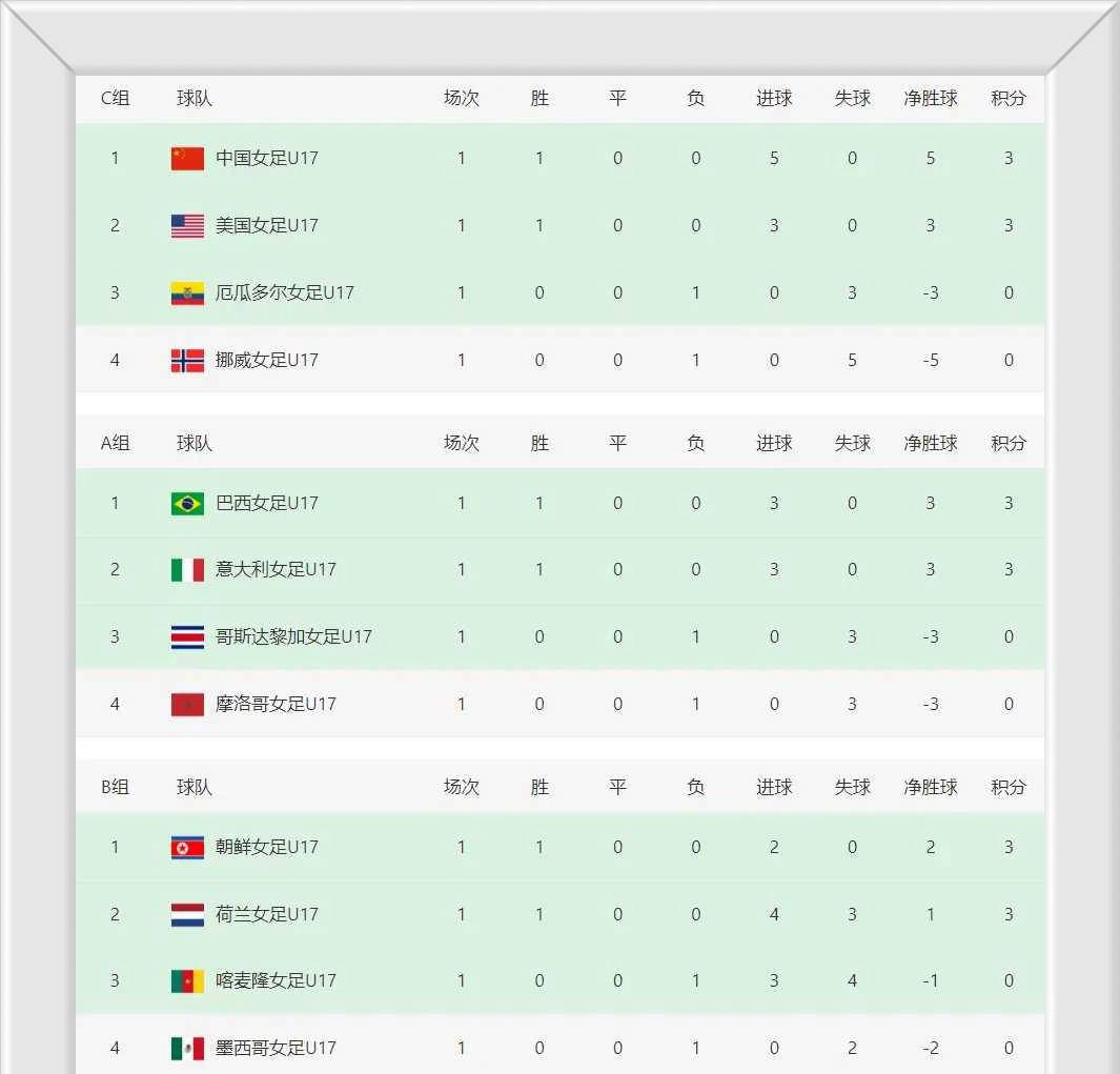 值得一提的是,在首个比赛日中,共有三个小组进行了首轮比赛,而中国队的5-0战绩不仅是当天最大的胜利,也是攻入球数最多的队伍。