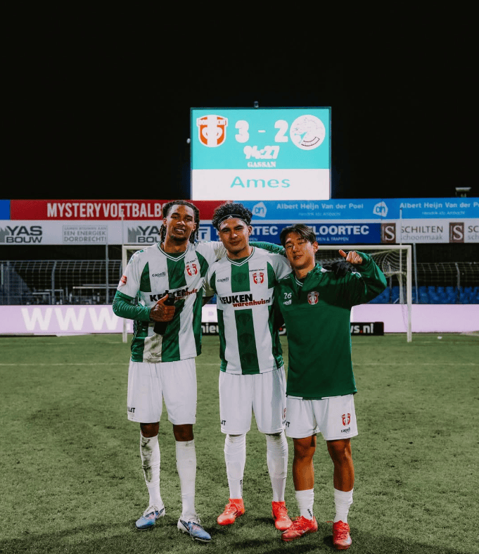 最后我们来看欧洲赛场韩国球员们的表现。昨晚在荷乙的舞台,从布莱顿租借到多德勒支的韩国小将尹棹泳终于收获了自己的荷乙首球。在第24轮多德勒支主场和登博斯的战役中,尹棹泳被放在了右边翼卫的位置上,这也是继首轮比赛后,他又一次成为球队的右路首发。本场比赛,多德勒支开局打的很猛,他们多次射门威胁对手球门。