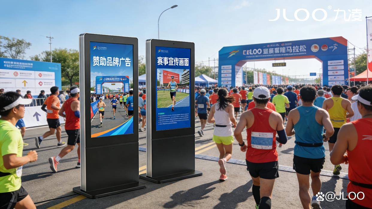 一场成功的马拉松赛事,起点的氛围决定了赛事的基调,而品牌的参与则丰富了赛事的价值;一台优质的户外广告机,既能点燃赛事的激情,也能放大品牌的光芒。九凌JLOO户外广告机,以硬核技术适配户外赛事场景,以多元功能赋能氛围营造与品牌展示,既解决了马拉松起点户外设备运行不稳定、展示形式单一的痛点,也满足了赞助品牌商精准曝光、深度传播的需求,更提升了赛事的专业性与观赏性。